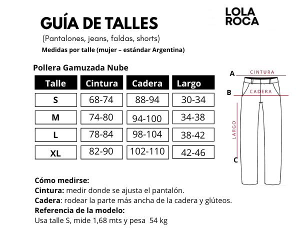 Descubrí la Falda Nube, una prenda confeccionada con material importado de excelente calidad que combina estilo y comodidad para cualquier ocasión. Su composición de 96% poliéster y 4% spandex le confiere una textura suave y un ajuste perfecto que se adapta a tu figura sin perder la forma.